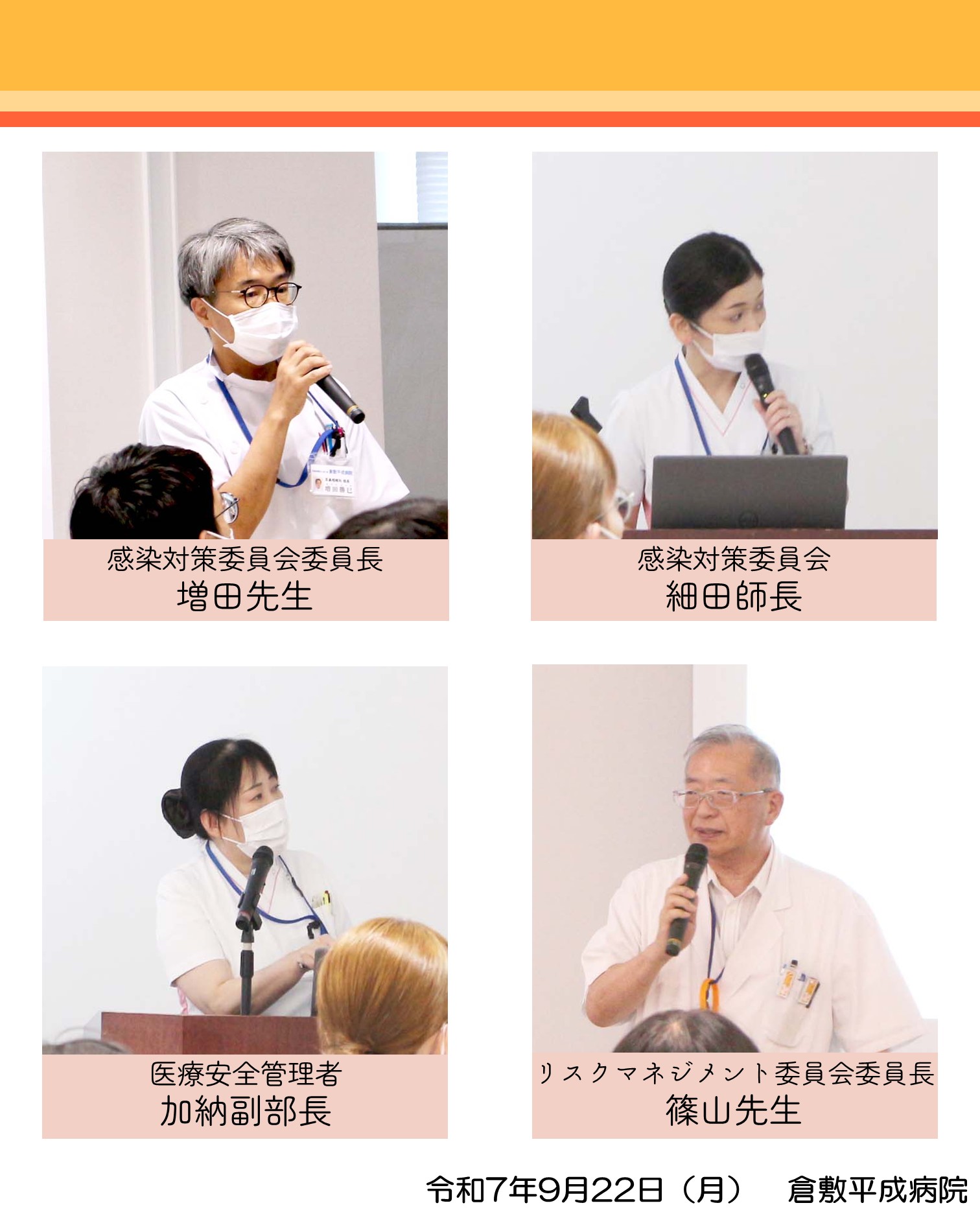 開会挨拶は感染対策委員会委員長 増田先生が、閉会挨拶はリスクマネジメント委員会委員長 篠山先生がご担当されました。