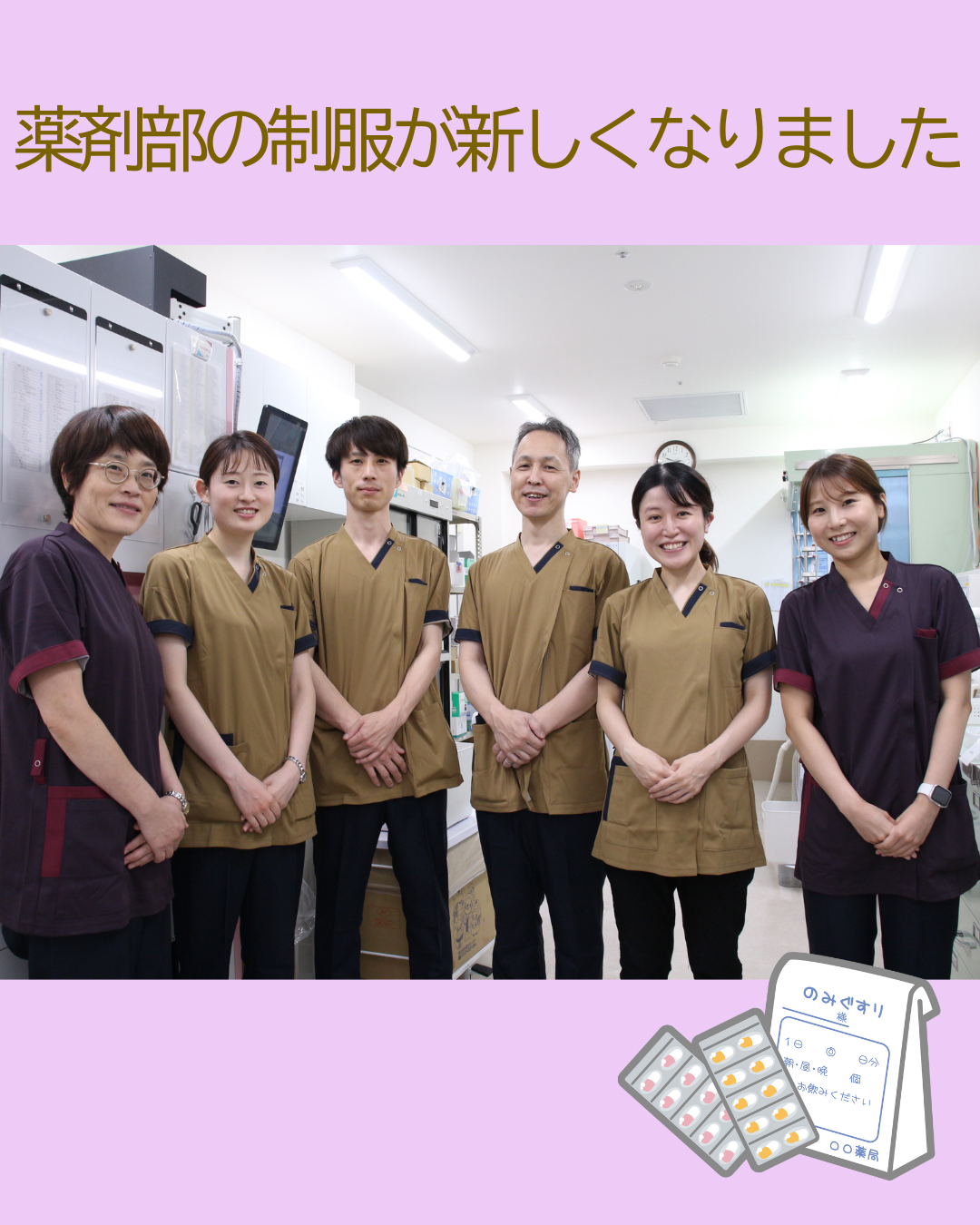 新しい制服をきっかけに、より親しみやすく、頼れる薬剤師を目指してまいります。