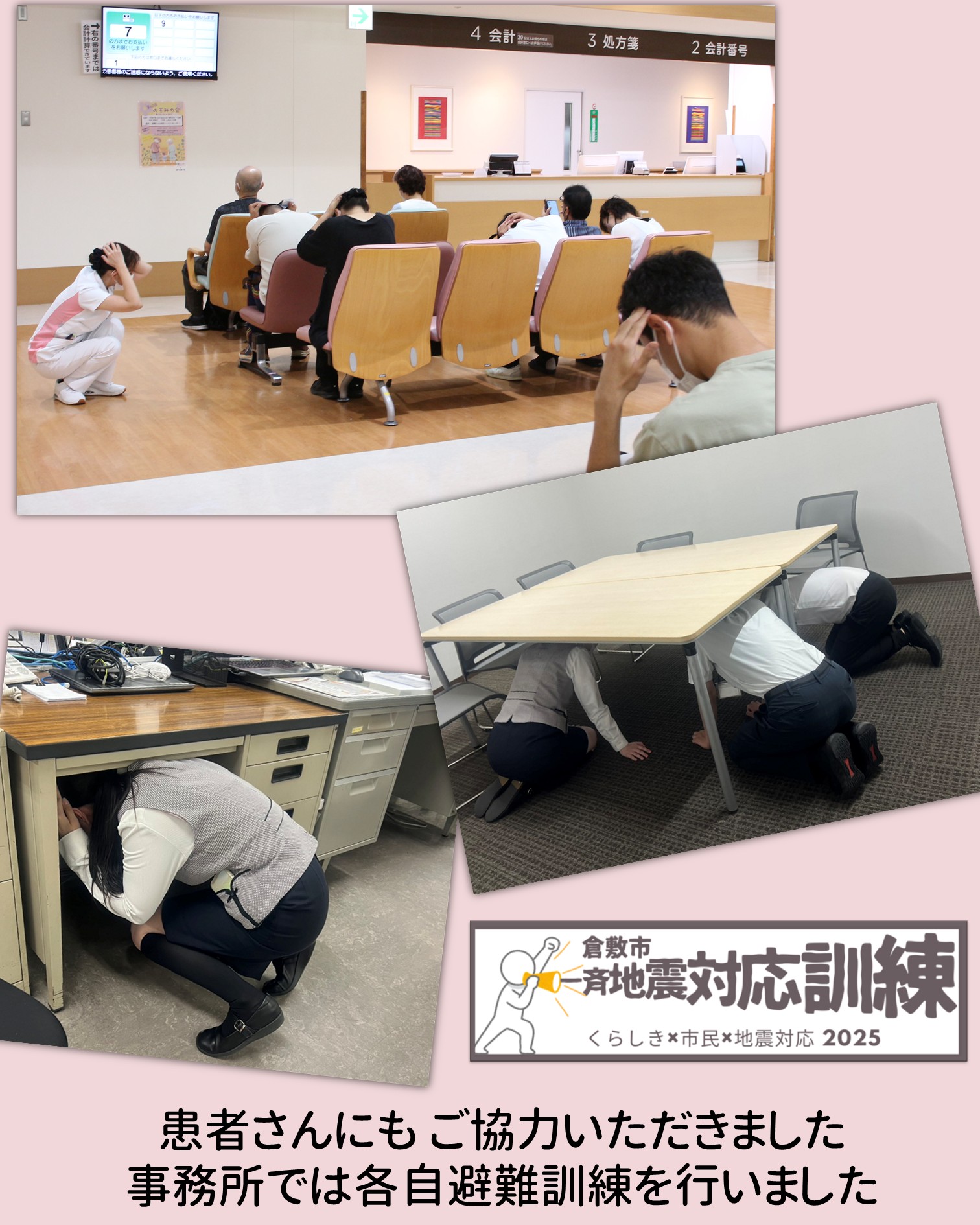 #倉敷平成病院 #倉敷市一斉地震対応訓練 #もしもの時に備える #まず低く #頭を守り #動かない