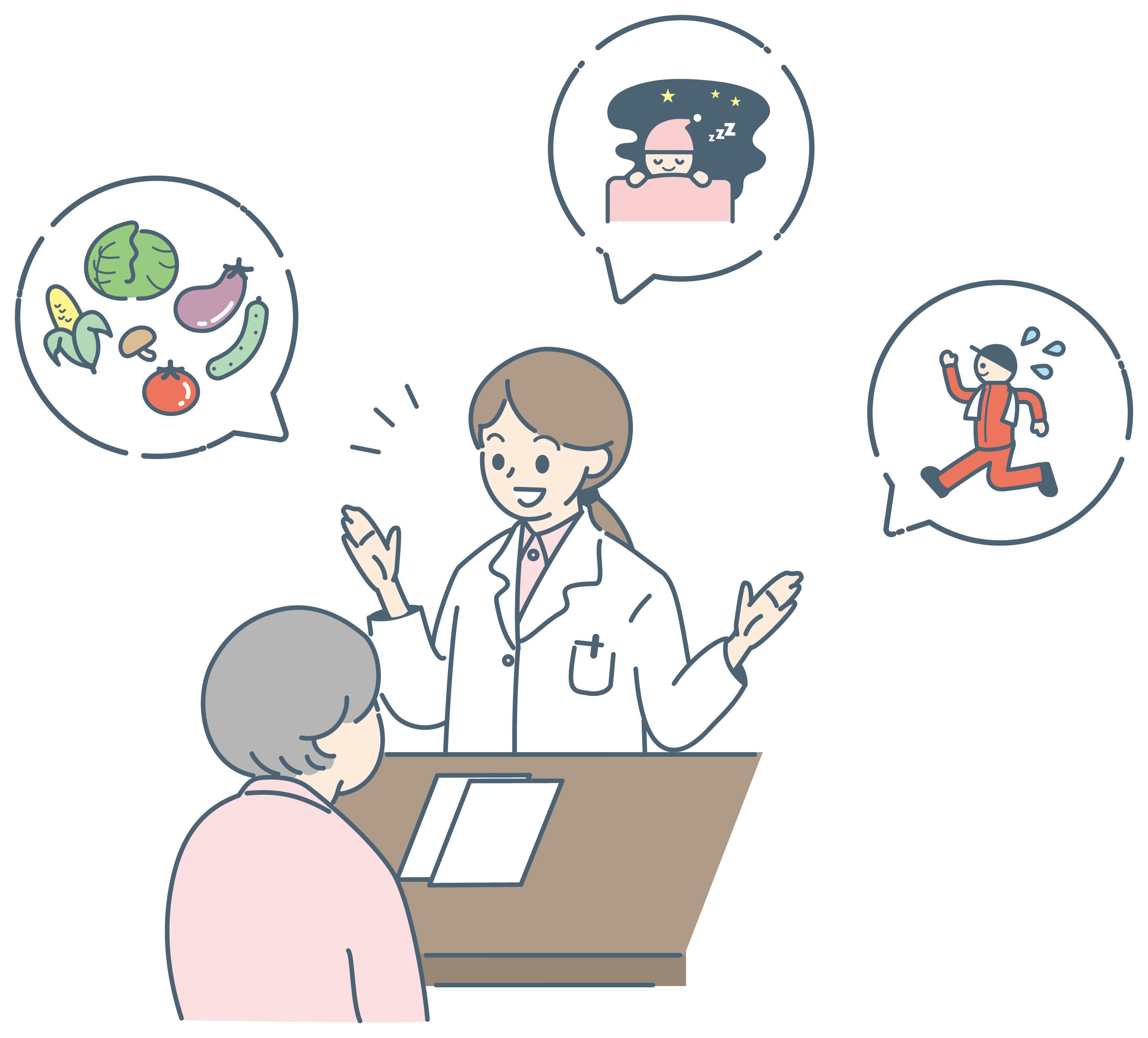 保健師、管理栄養士などの専門家が健診結果をもとに、日頃の食生活や運動についてアドバイスを行い、その方に合った生活習慣改善のサポートを行います。