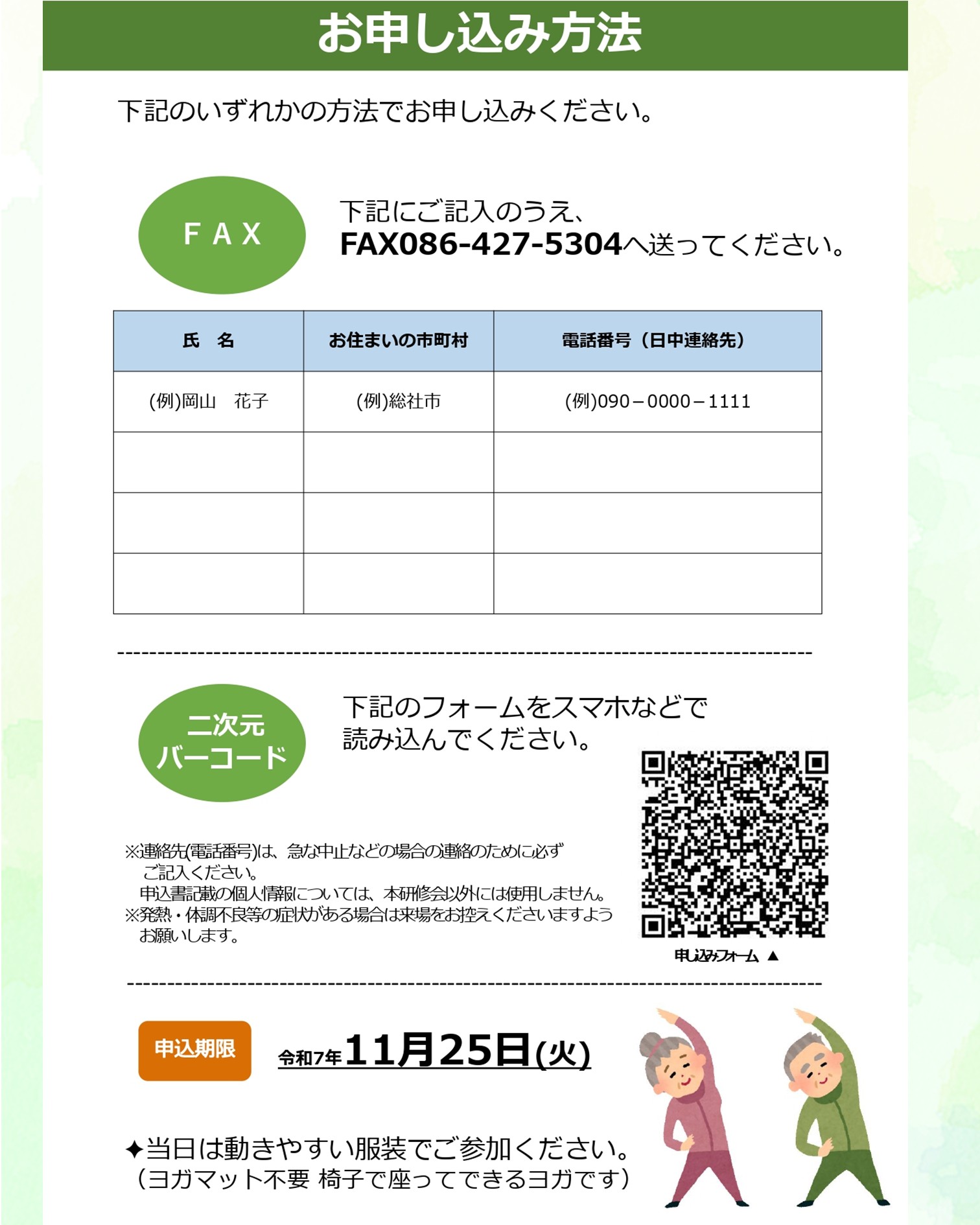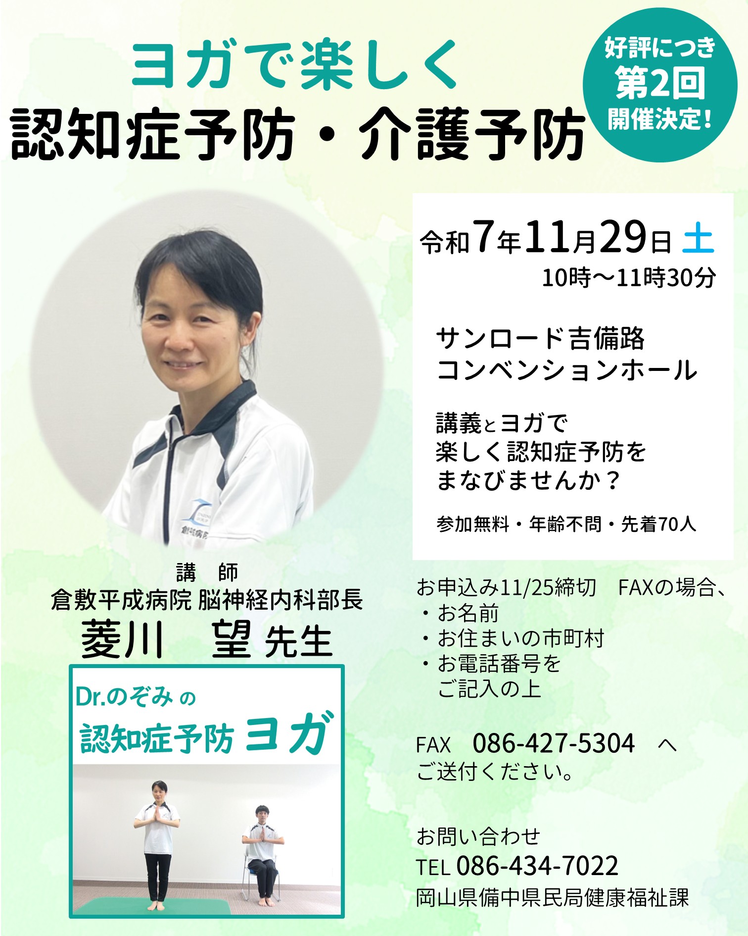 令和6年度に開催して大変好評をいただいた、菱川先生のヨガ講座、第2弾の開催が決まりました