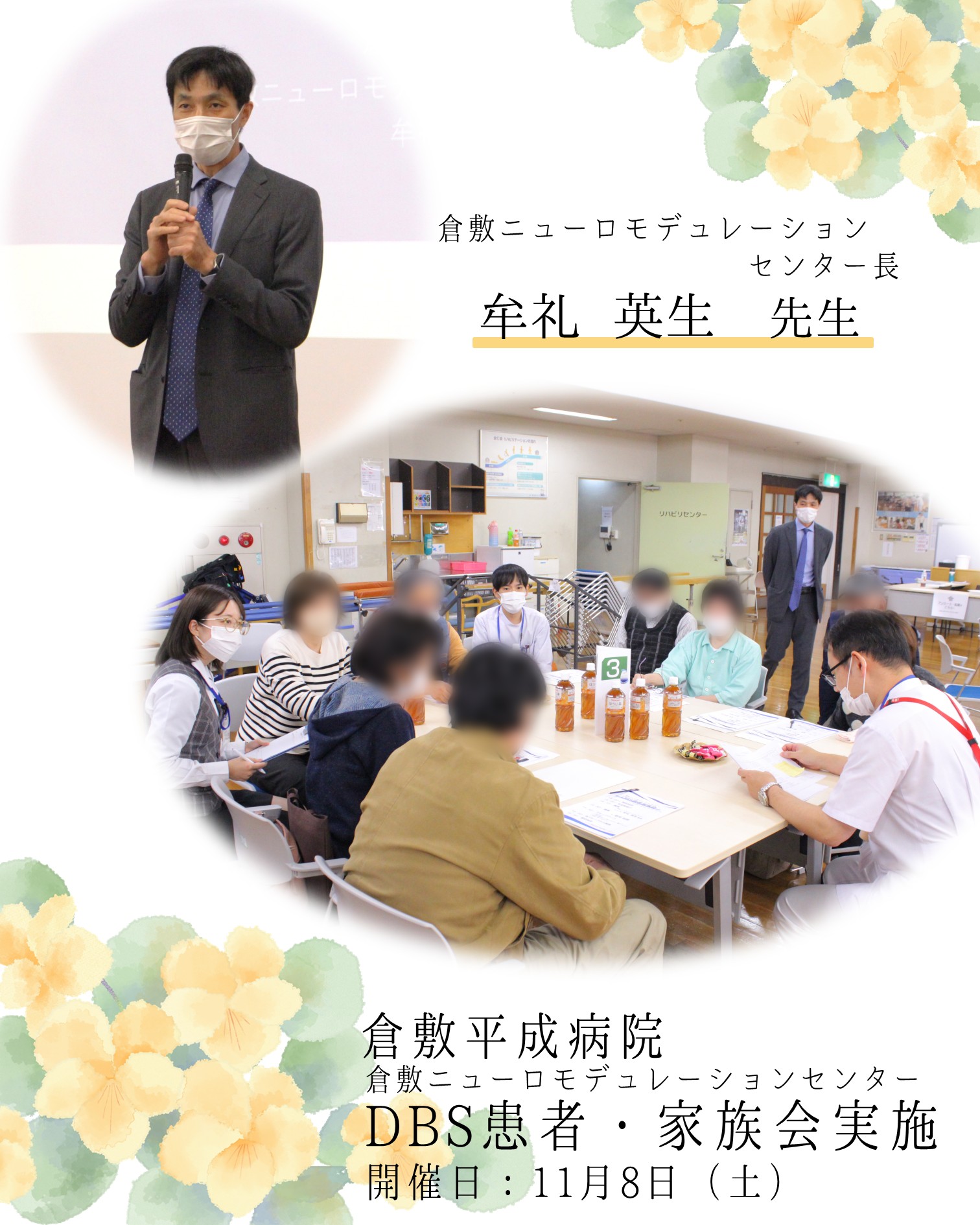 倉敷ニューロモデュレーションセンターでは、昨年から開始しているDBS患者・家族会を今年も11月8日(土)に開催させていただきました。