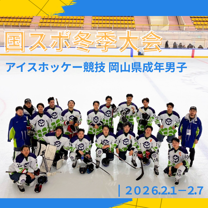2026年2月1日〜2月7日に青森県八戸市で開催された第80回国民スポーツ大会冬季大会 アイスホッケー競技(成年男子)に、岡山県代表チームのサポートスタッフとして、当センターの川元(理学療法士、アスレティックトレーナー)が帯同しました。