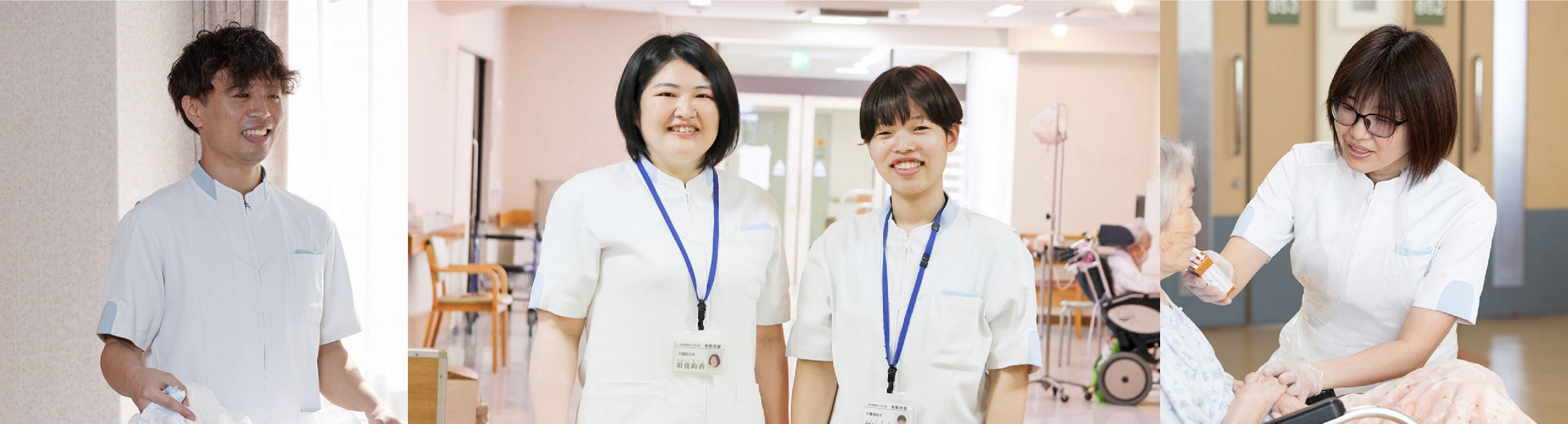 ともに働く仲間になる人として、介護福祉士、看護師、理学療法士、作業療法士、栄養士などの資格取得を目指す学生の臨地実習を受け入れています。自身の専門職としての機能と役割を理解し、チームの一員として責任ある行動や協調的態度がとれることの大切さを伝え、講義で学んだことを実際の入所者のケアに適応し応用する能力を身につけることを目標に支援しています。