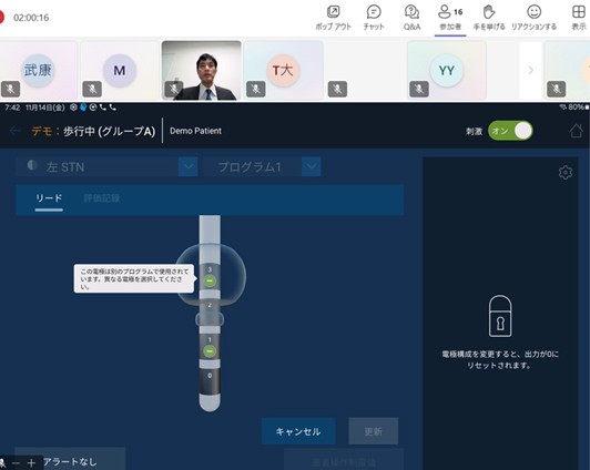 講習会では、実際の症例を医師用タブレット画面で示しながら、具体的な調整過程を紹介しました。DBS調整は、実はお薬の量を調整することとよく似ています。医師用タブレットの操作は慣れてしまえば、それほど複雑ではありません。刺激調整と薬剤調整は互いに影響し合うため、脳神経内科と脳神経外科の先生方が同じ理解を持ち、連携することが治療の質を高めることに繋がると思われます。